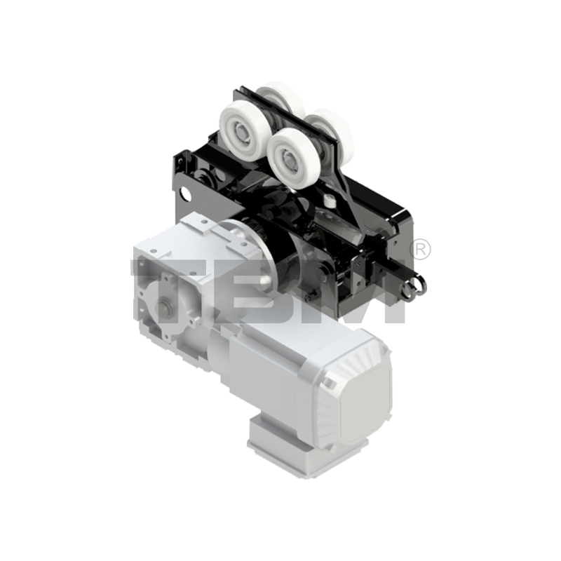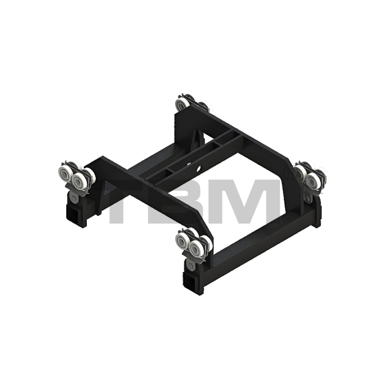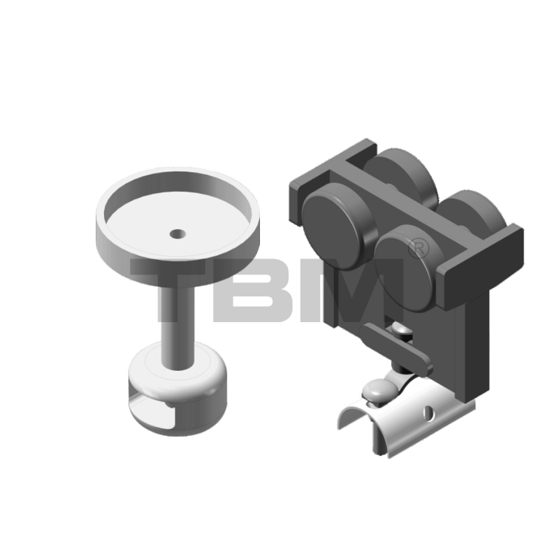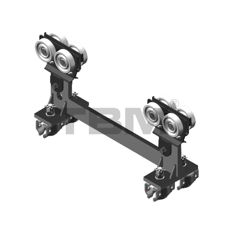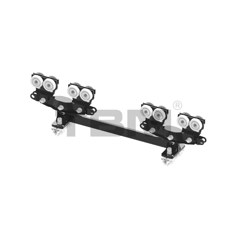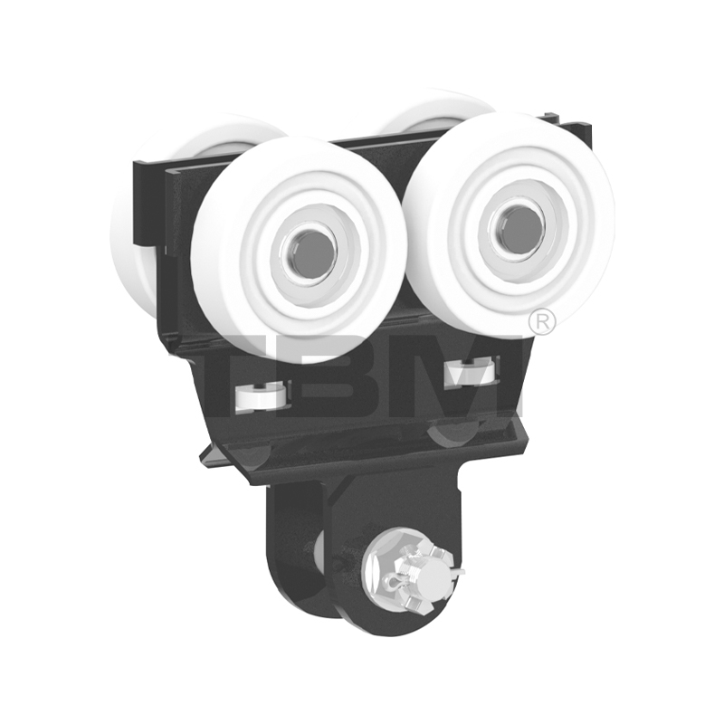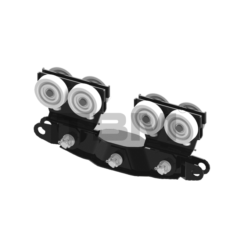 [Kolesá vozíka sú vyrobené z vysokopevnostného nylonu so špecifickým uhlom kolies, ktoré dokonale zapadajú do behúňa dráhy. Vozík sa počas prevádzky automaticky vycentruje. Vozík je vybavený konštrukciou vodiaceho kolesa, aby sa zabránilo treniu s otvormi v dráhe a zvýšil sa jazdný odpor. Dve horizontálne umiestnené krídelká zaisťujú, že vozík v prípade poruchy nespadne z dráhy a plne zaisťujú bezpečnosť.]
